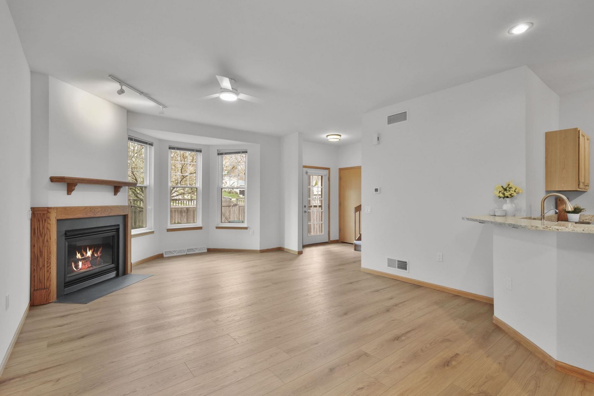 Showings start 4/24. This townhome-style condo has been meticulously updated for a new owner. From the moment you enter, you'll love how spacious the home feels w/ 9-ft ceilings on the ML, fresh paint ('26), & bright alcoved windows inviting you in. Gather around the cozy gas FP, or step out to enjoy the sun on your private patio. The kitchen features granite counters ('26) & a convenient breakfast bar. New LVP flooring runs throughout the main level ('26) & new carpet was just installed on the UL & LL rec room ('26). Upstairs, the bedrooms have vaulted ceilings & their own en suite bath & WIC, adding an extra touch of luxury. New ceiling fans & light fixtures, too! Plenty of storage space between the large 2-car garage & unfinished basement area. Convenient to westside amenities & zoned to Verona schools. Enjoy close proximity to grocery stores (HyVee, ALDI, Target); Princeton Club, many local parks, & charming Paoli, WI. Don't miss the chance to see this home in person!
