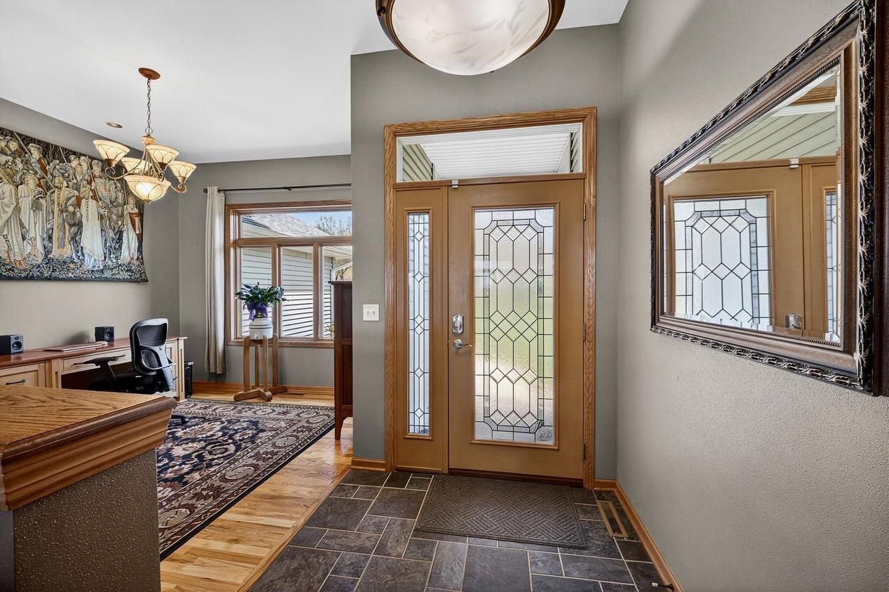 Showings begin 4/25. Just off a quiet lane near the historic town of Blanchardville, a secluded driveway leads to this beautifully maintained ranch home which offers privacy, space, and comfort along with expansive Driftless region views. Set on more than 10 partially-wooded acres (per survey) of walnut and ancient oaks, the nearly 3,000 square foot home offers a thoughtfully-designed open floor plan for everyday living & entertaining. A bright great room with 10-foot ceilings & gas fireplace leads to an inviting kitchen with island & pantry, dining area, and primary suite with walk-in closet, private bath, and spacious shower. Main-floor laundry connects directly to the roomy 3-car garage. Exposed walkout lower level provides additional bright living space with large rec & game room areas, 2 additional bedrooms, full bath, and direct access to the outdoors. Enjoy breathtaking vistas from the patio or upper deck.